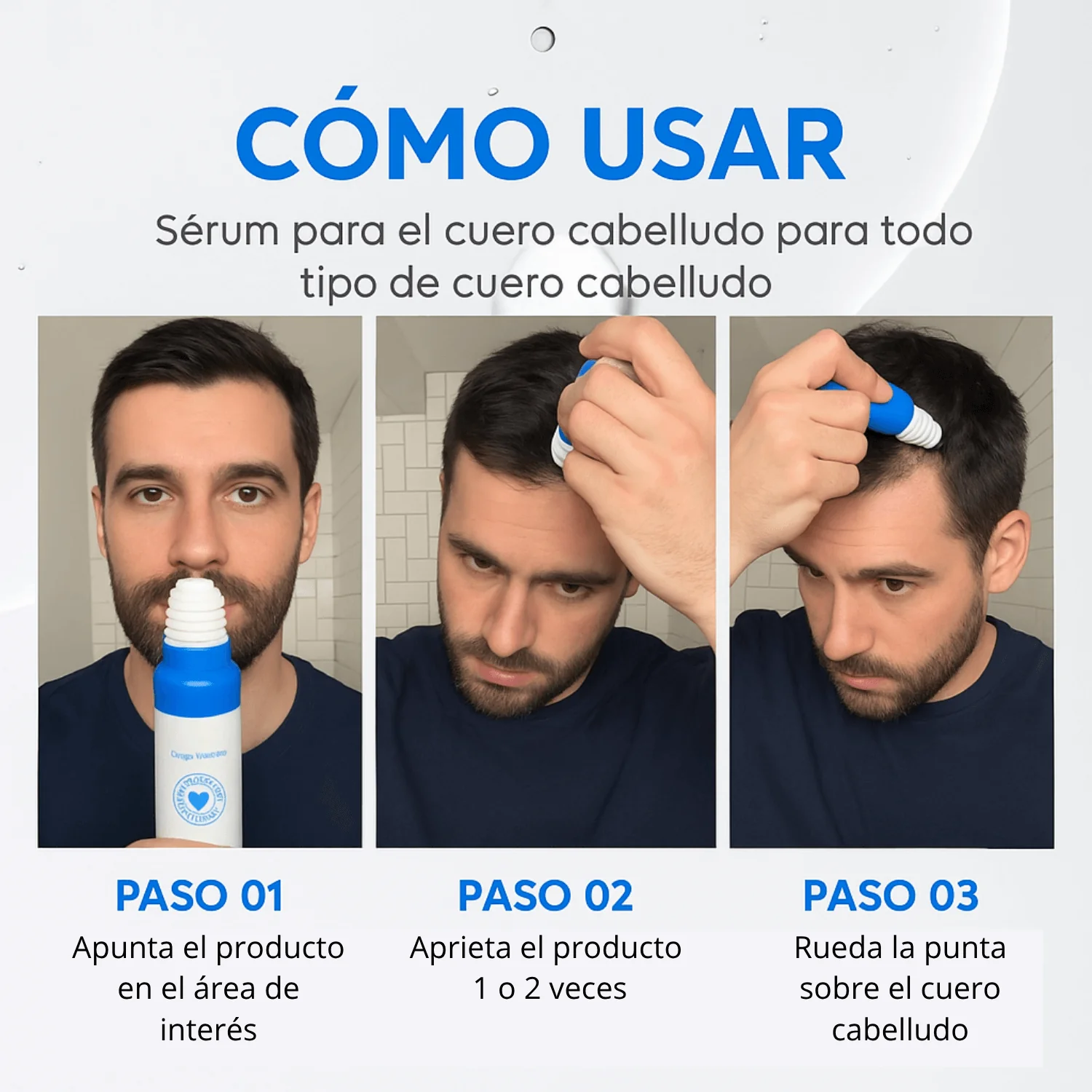 Aplicar 1 vez al día sobre el cuero cabelludo limpio, preferiblemente en la mañana. Masajear suavemente con el aplicador.